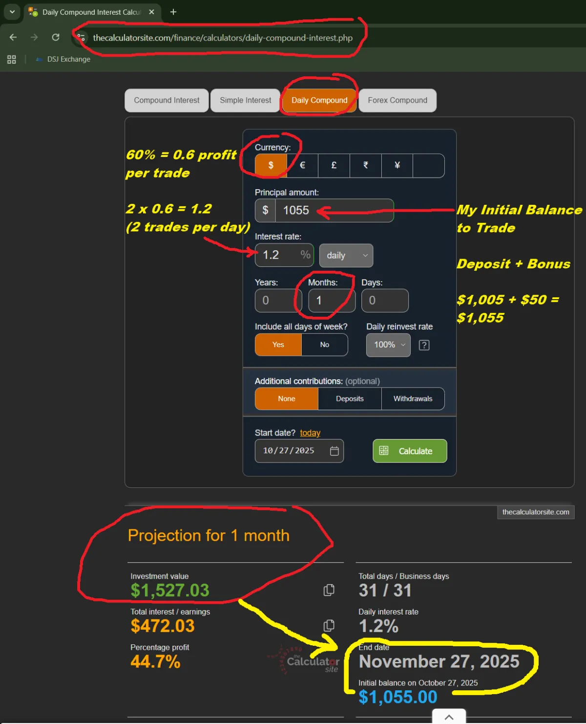 This calculator is a tool to help you learn. It shows you an idea of how compound interest works.
